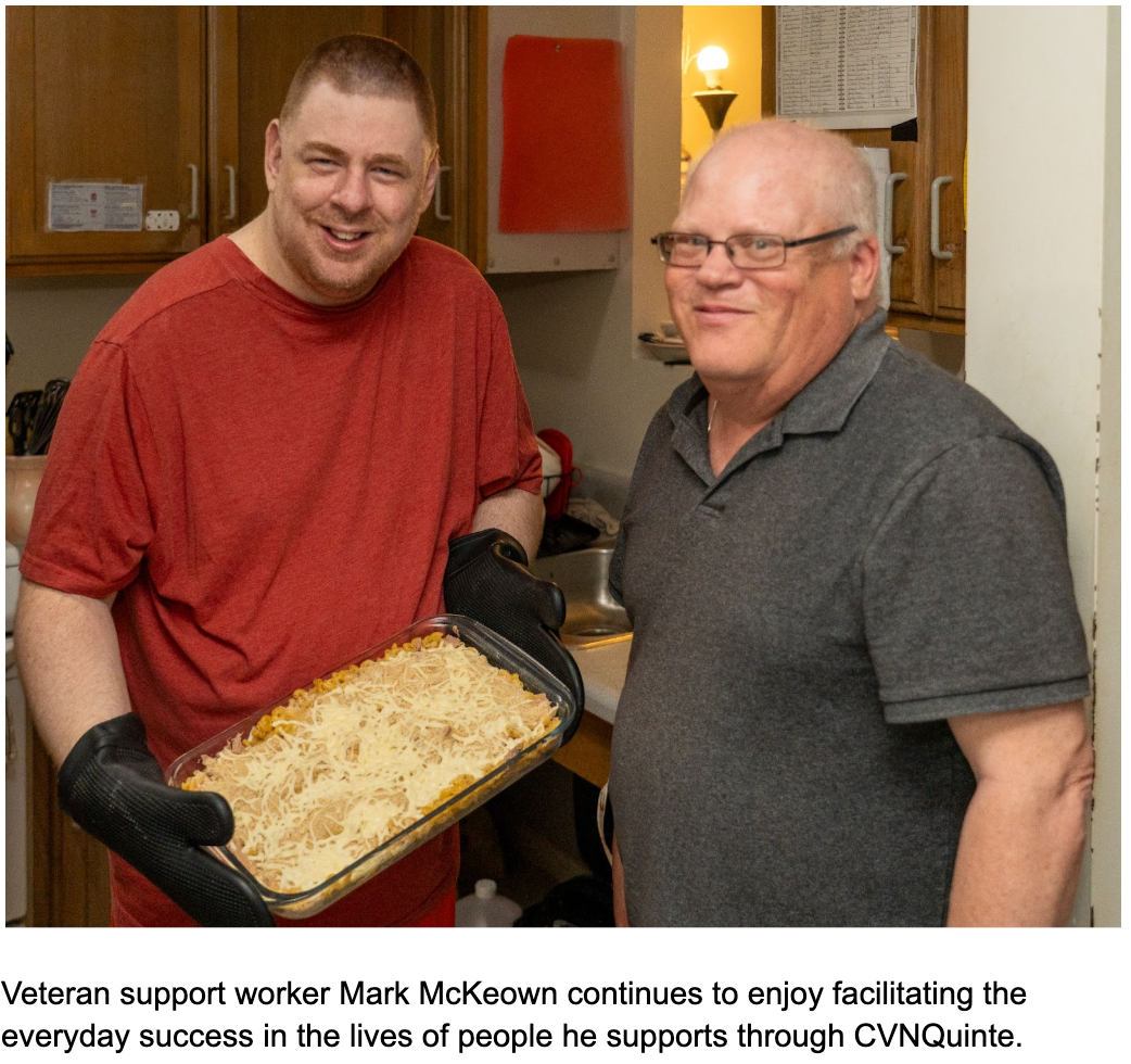 Mark appreciates CVNQuinte’s organizational support for dignity and choice, even when that includes the possibility of failure. “Whether it turns out to be a good decision or not a good decision, they have that right to make it,” he explains. “And if it fails, we’re there to help. We all fail at something once in a while.”